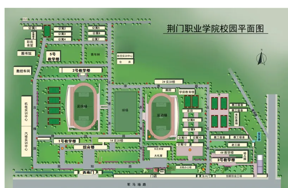 2.荆门职业学院(荆门市掇刀区军马场路3号)